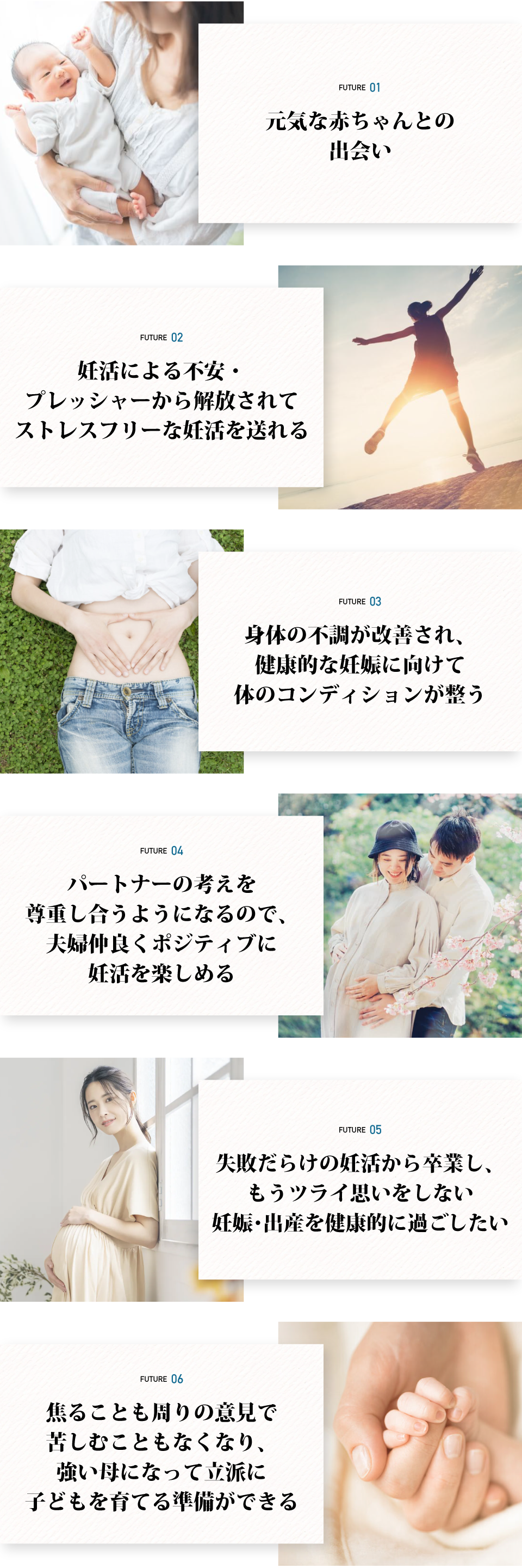 様々な妊活が流行しており、「簡単だから」と方法論に走りがちですが、全員に合うとは限りません。1人1人身体が違うので、自分に合った妊活を学ぶことが妊娠への近道です。